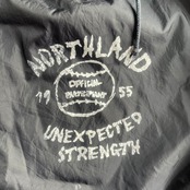 フロントには「NORTHLAND」「UNEXPECTED STRENGTH」の存在感あるプリント、